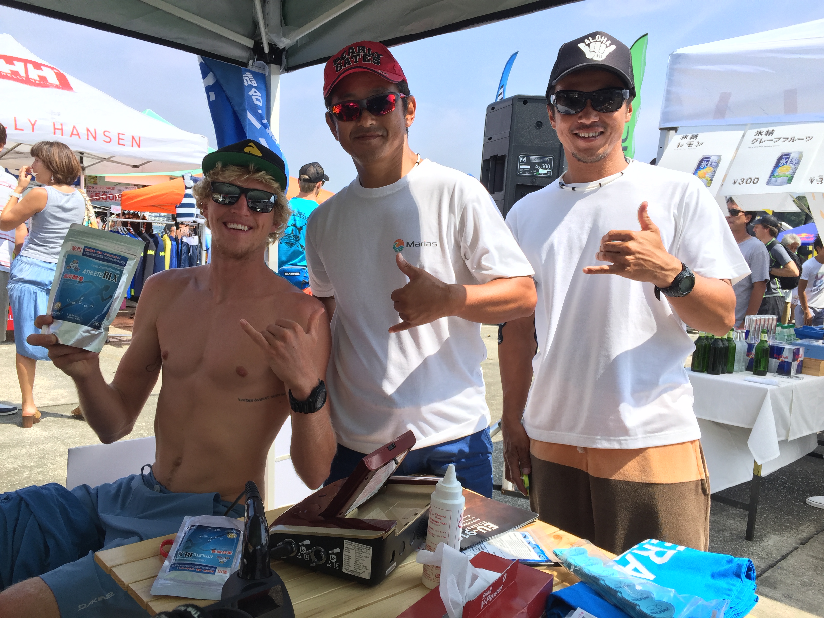 Waterman League World Series Victoria Cup Hayama Pro 9月 9, 20159月 10, 2015コメントをどうぞ 9月4日から3日間逗子海岸においてウォーターマンリーグが開催され、世界中から集まったSUPのトッププロたちによる熱い戦いが繰り広げられられました。葉山マリーナ側ブースに出店した我がマリアスブースも大盛況。アスリートの身体をメンテナンスという趣旨で出店した我がブースにはほとんどの選手が立ち寄ってくれ、駆け込み寺ならぬ選手たちのお助けブースになりました。 全身メンテナンスに訪れてくれたKai Lenny プロサーファーレジェンド波流月の青山弘一氏と共に